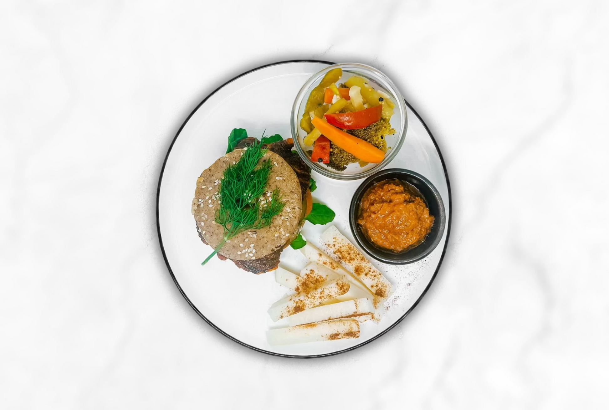 Scrumptious raw sesame sprinkled nut bagel with cashew cream cheese & fixings