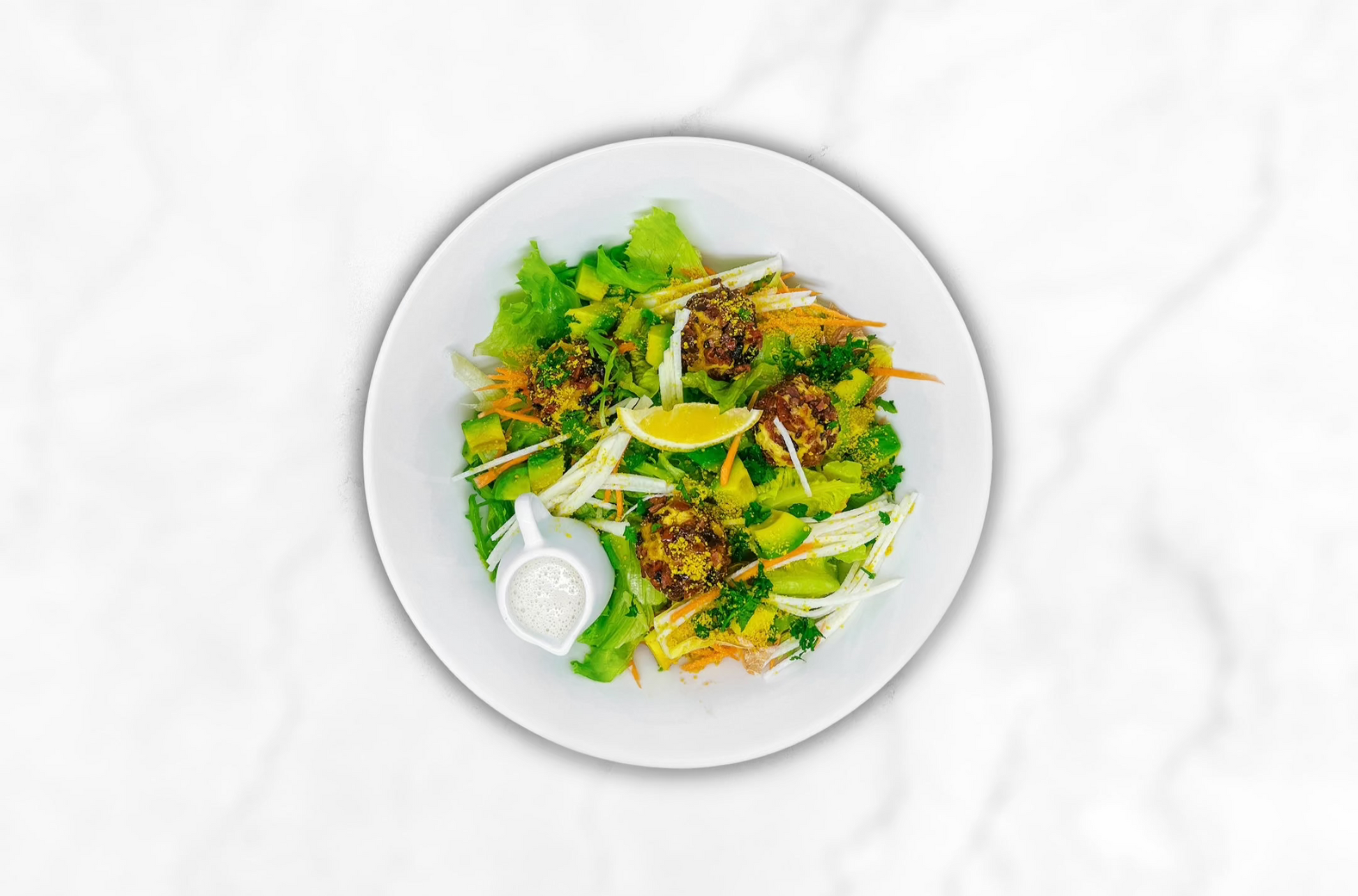 Mouthwatering dry fruit & nut cheese balls on organic mixed salad with truffle dressing
