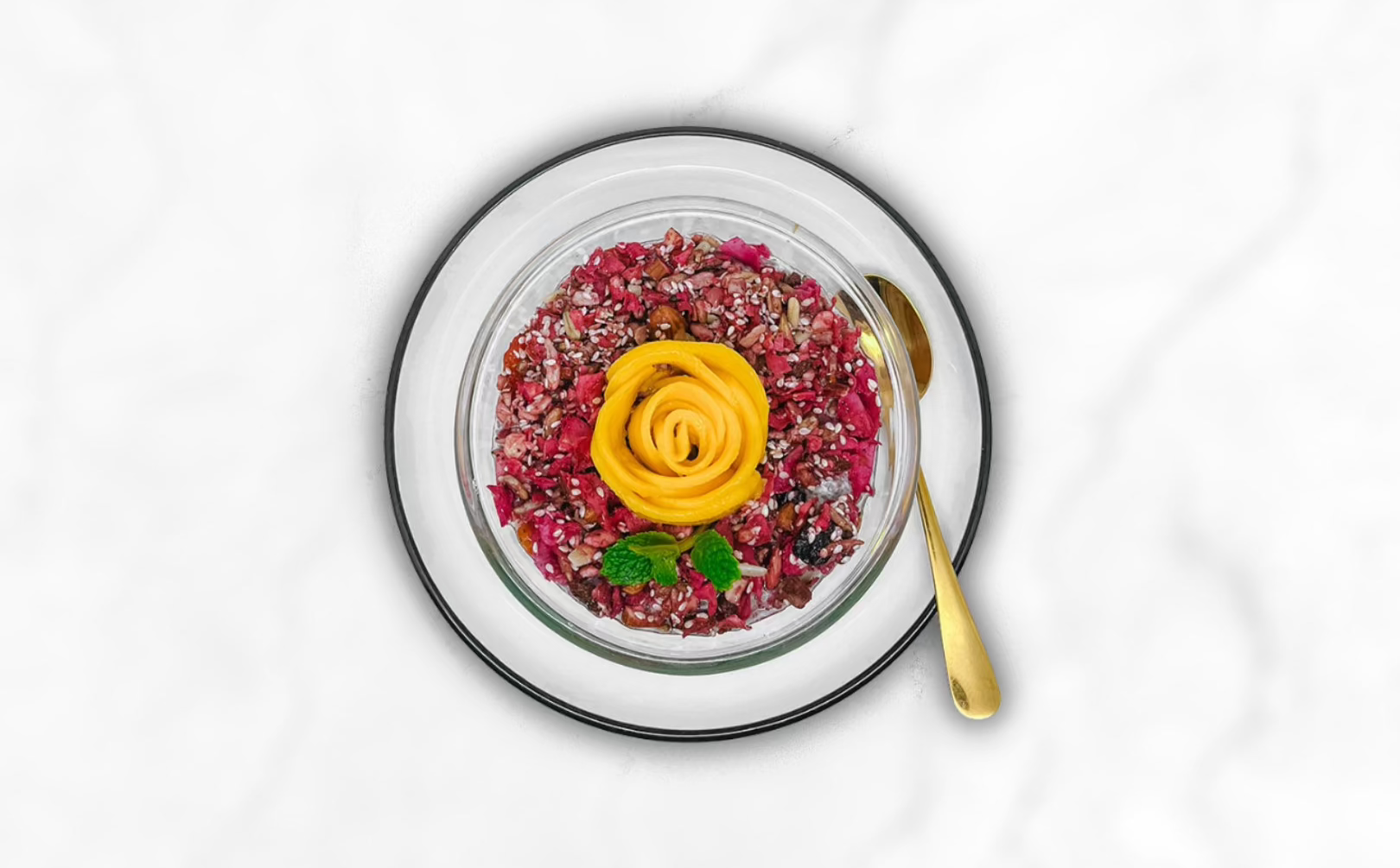 Nutritious chia pudding served with mixed fruit & your choice of granola